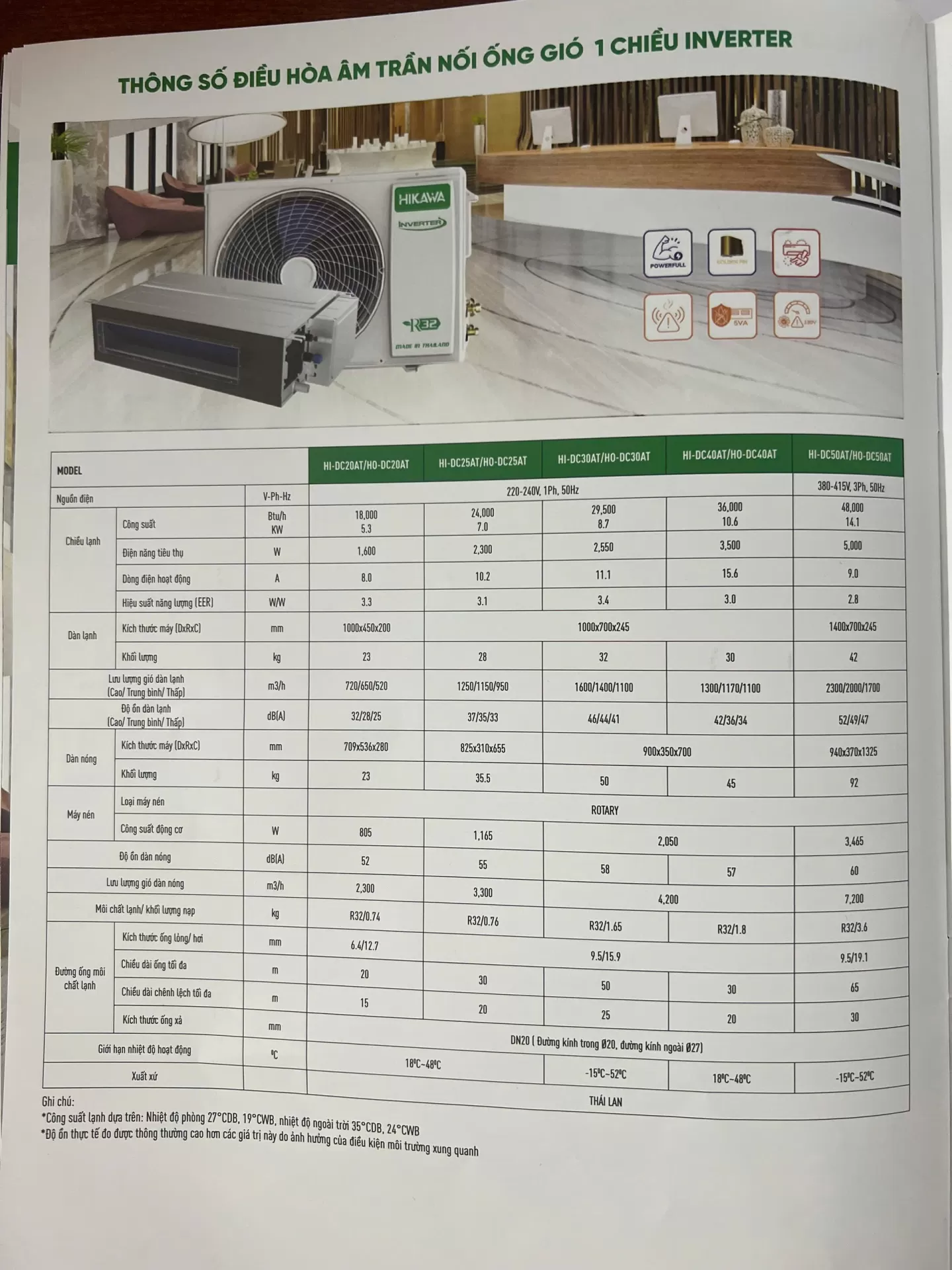 Dòng máy: Máy điều hòa âm trần nối ống gió inverter 1 chiều