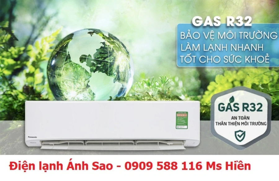 Máy lạnh sử dụng Gas R32 — loại môi chất lạnh mới, tiết kiệm năng lượng và ít gây hại cho môi trường.