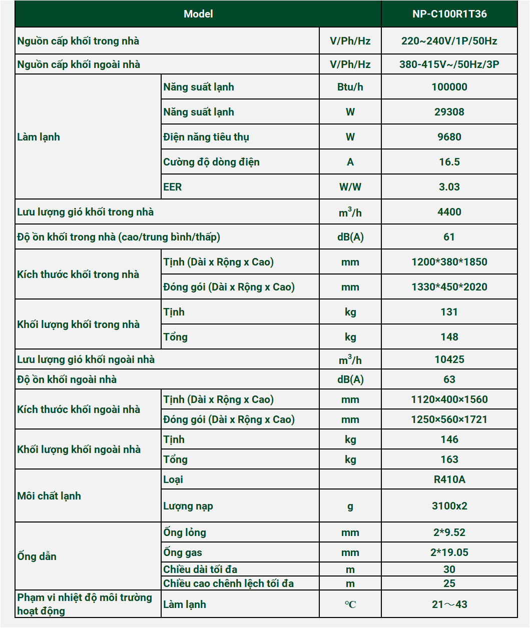 Công suất lớn với lưu lượng gió đến 4.400 m3/h