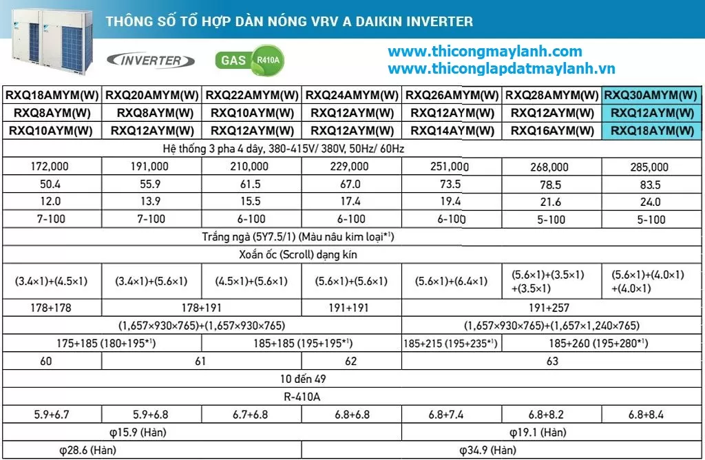 Công suát : 18HP ~ 50.4kw ~ 172.000Btu